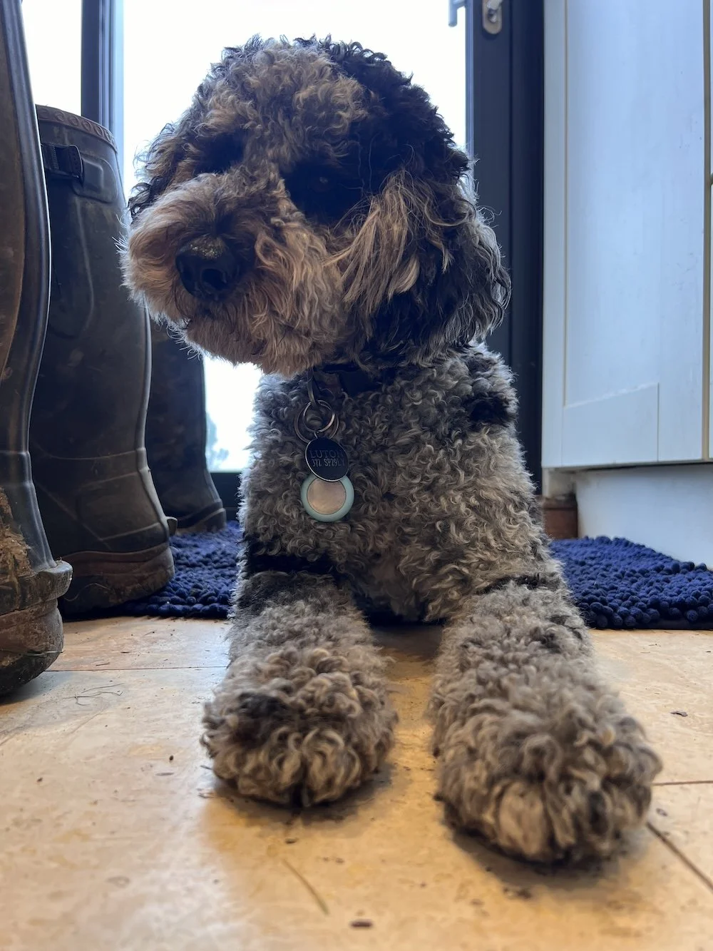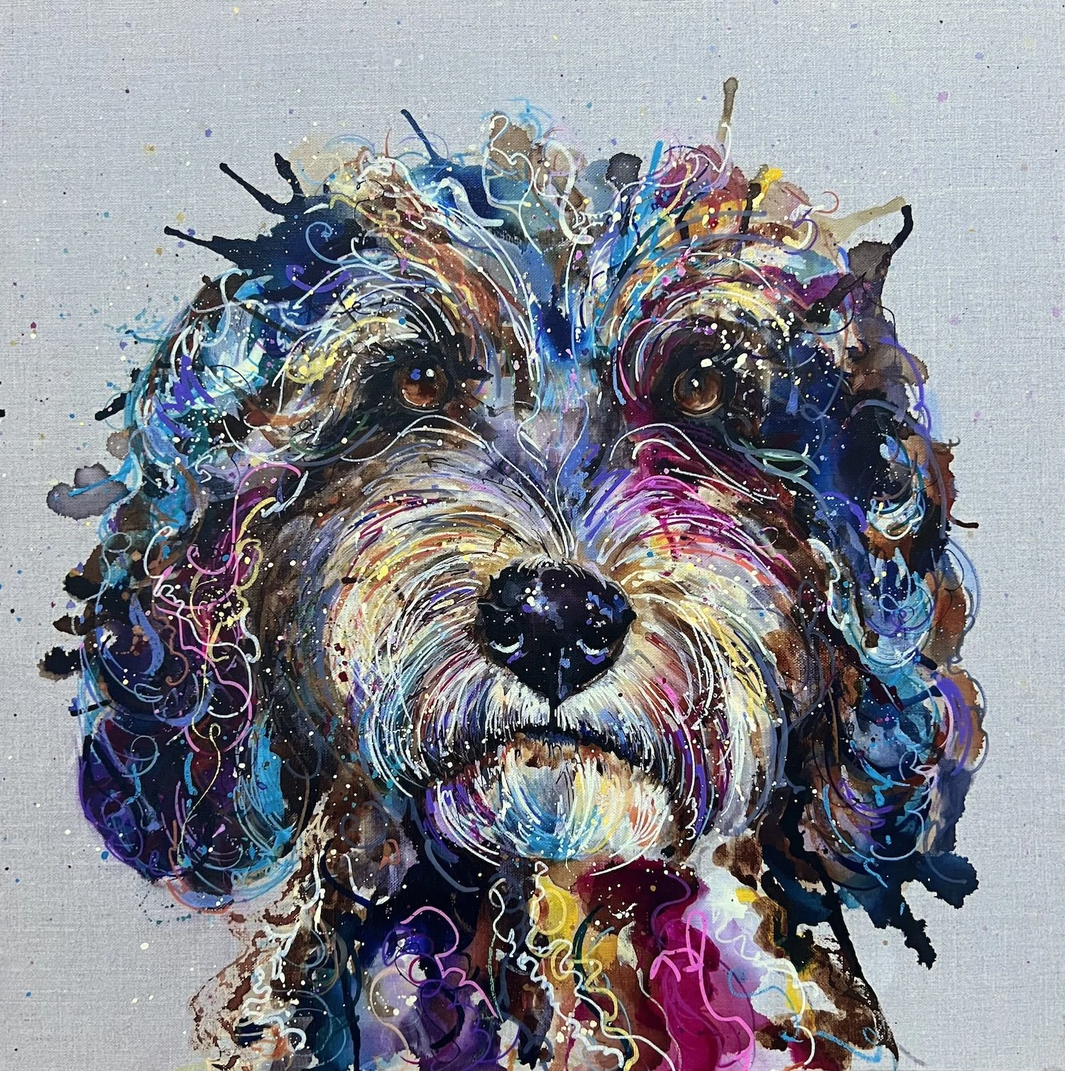 1. Get down so that you are eye to eye with your dog, if you take a picture with the dog looking up at you the painting won’t look right unless you hang it off the skirting board! Think about the impact of my cockapoo Bumbles here, he's fully eye to eye to us, that’s why it’s so powerful.