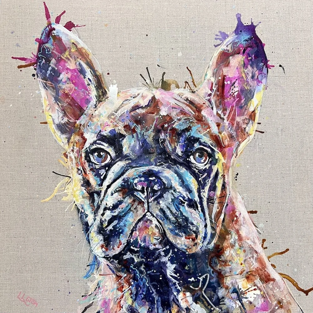 Since starting my whimsical woofers range which began with my own dear cockapoo I have been inundated with requests for a Frenchie. They are such popular breeds. This particular painting has been made into a print by my lovely publishers however if you want the one and only original it is available exclusively here on my website.