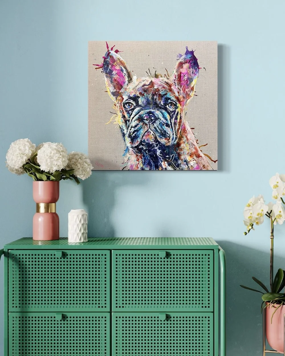 This is the original painting of Frenchie, the French bulldog.